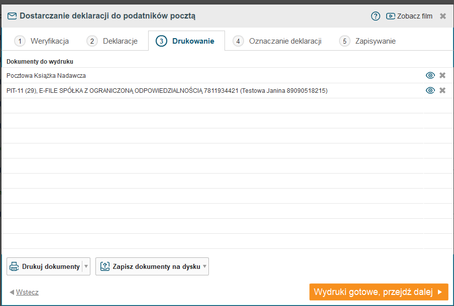 Po wydrukowaniu kliknij w 'Wydruki gotowe, przejdź dalej'.