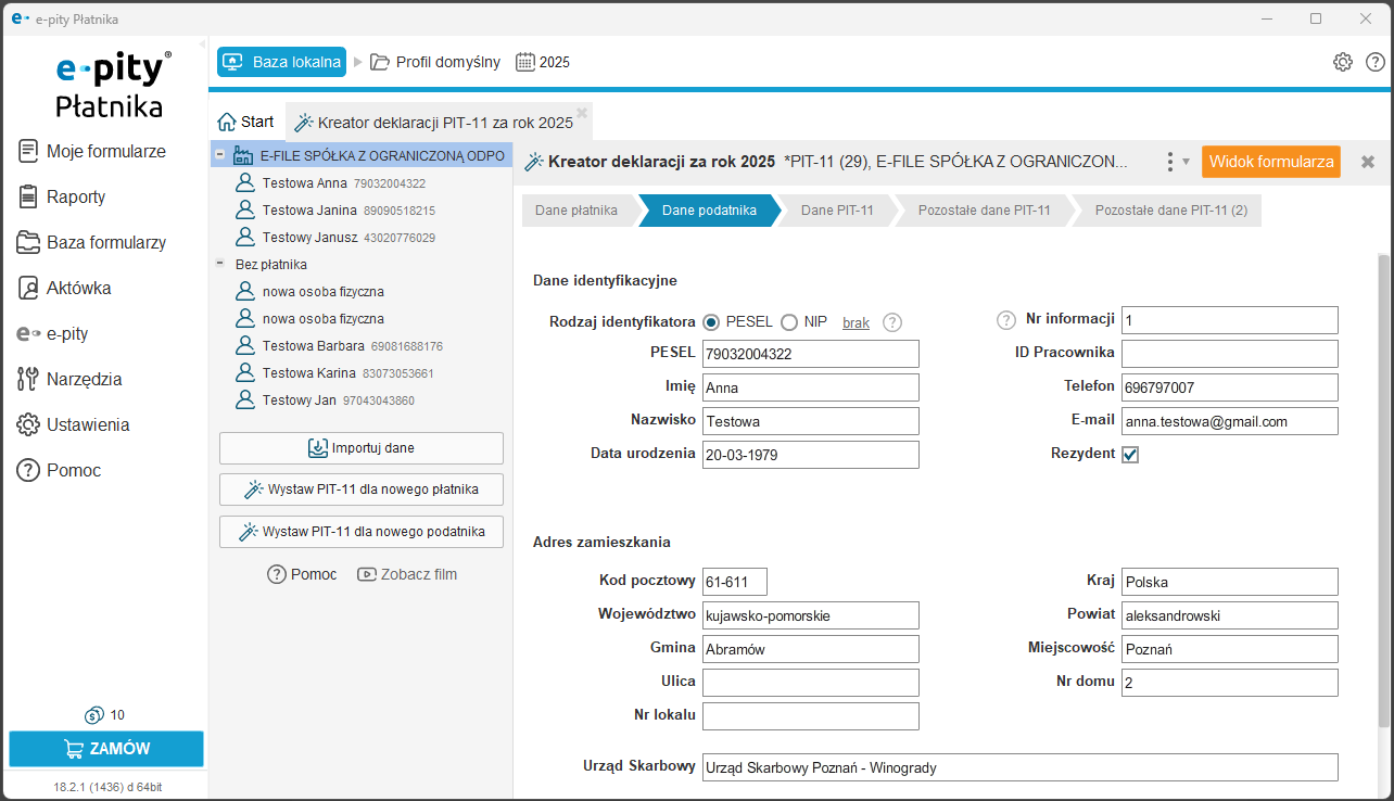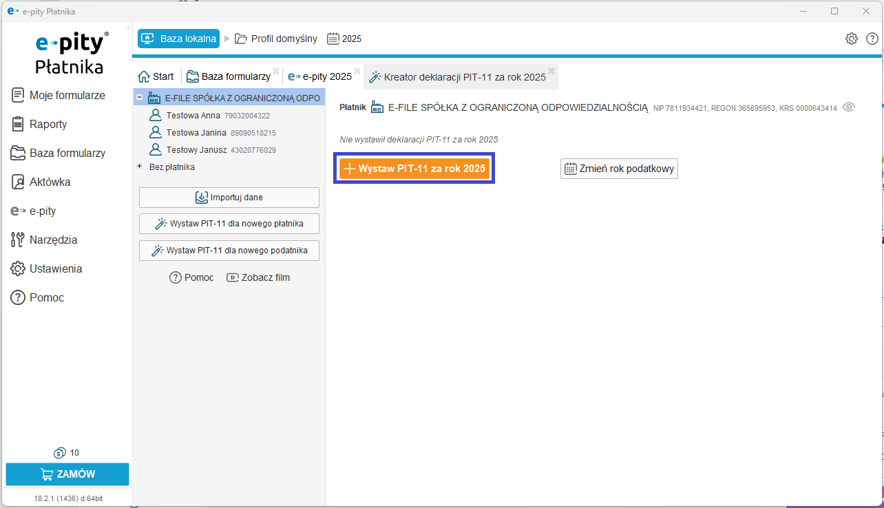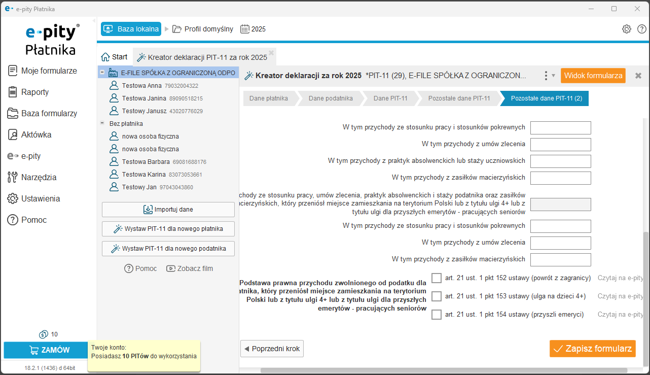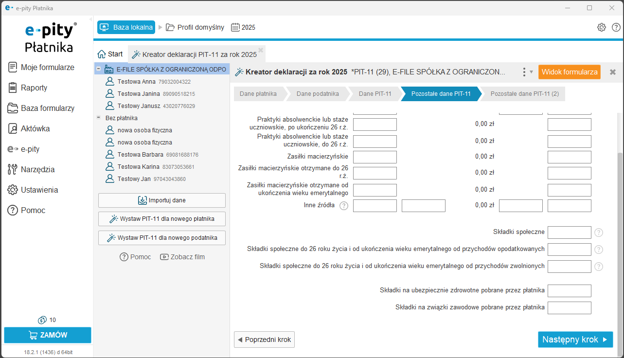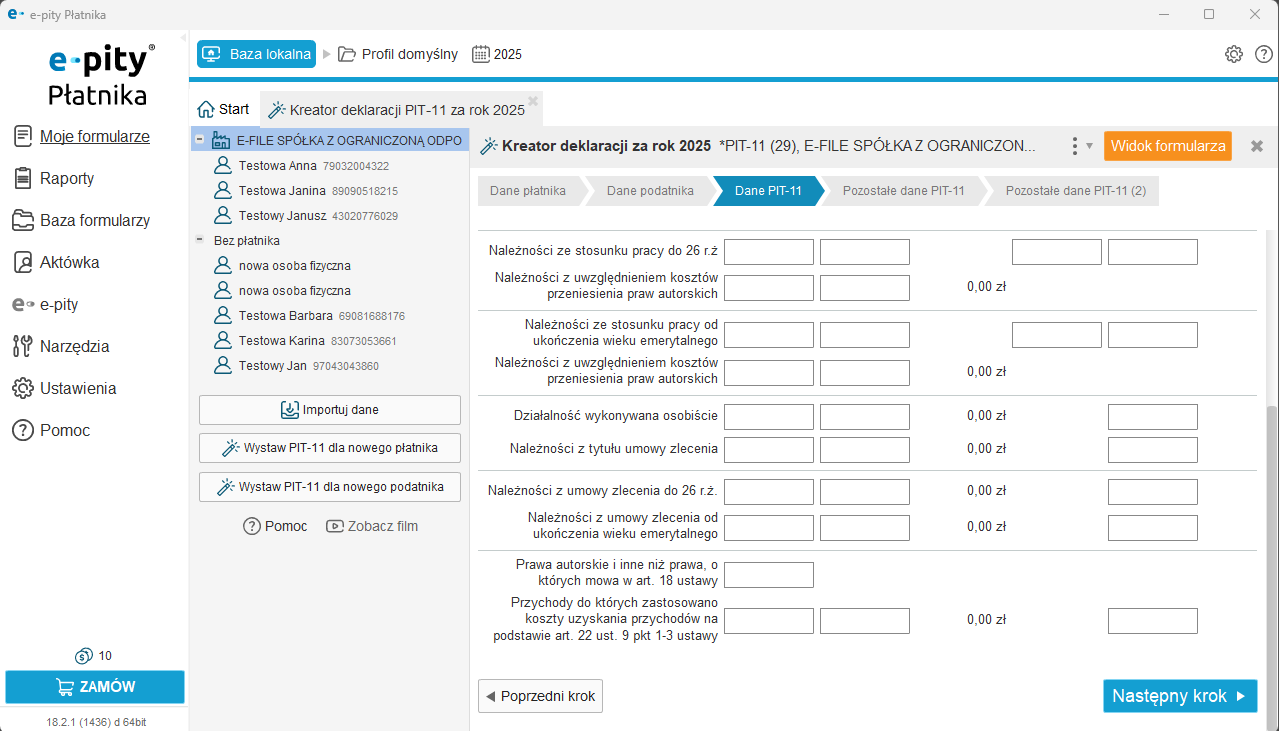 Uruchomi się kreator dodawania wybranego PIT (np. PIT-11) dla tego pracownika za aktualnie wybrany rok podatkowy.