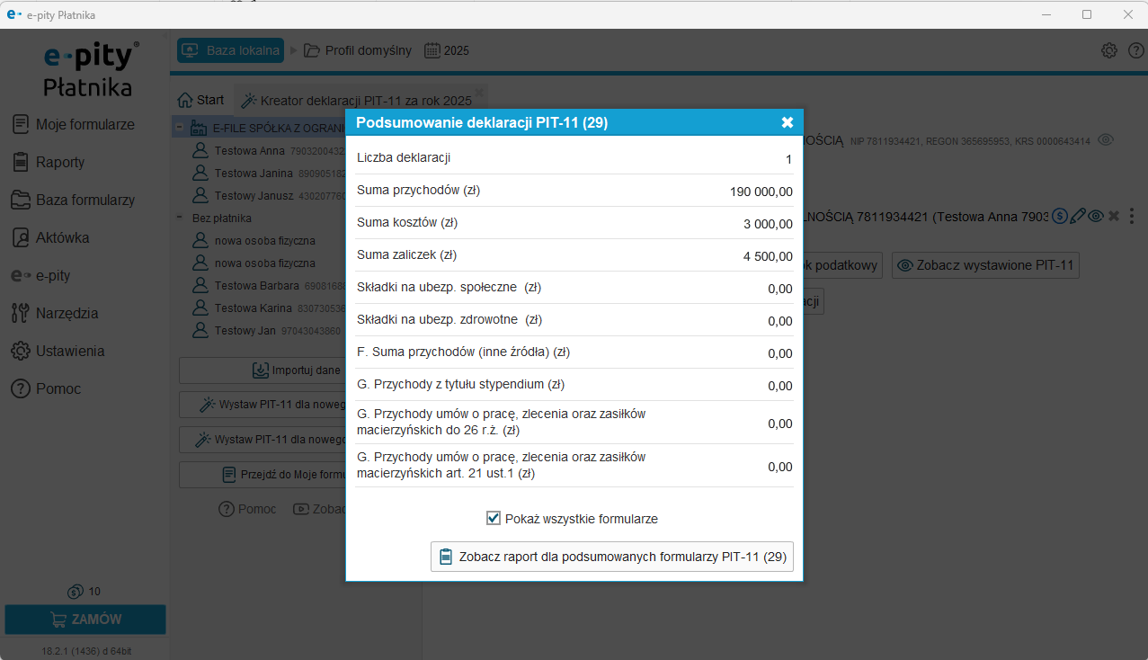 Wyświetli się okno z podsumowaniem deklaracji PIT-11.
